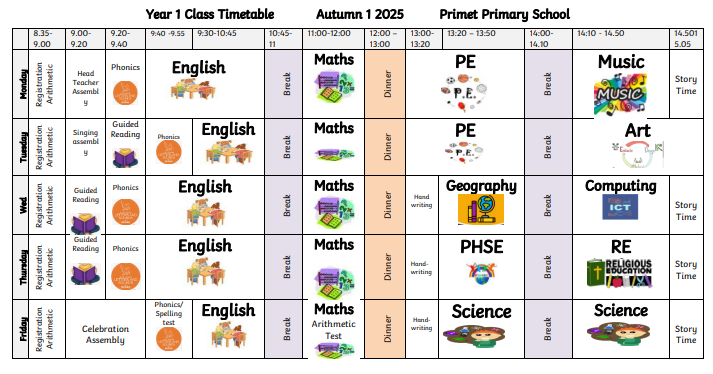 In Year 1 we have PE taught by Sam every Monday and Tuesday, so please remember to have your kit in school and that all clothing and footwear is labelled.