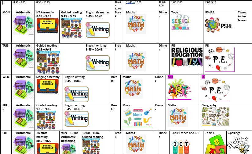 Below is our weekly timetable, which highlights the subjects your child will be learning each week. It provides an overview of what a typical week in Year 3 looks like.