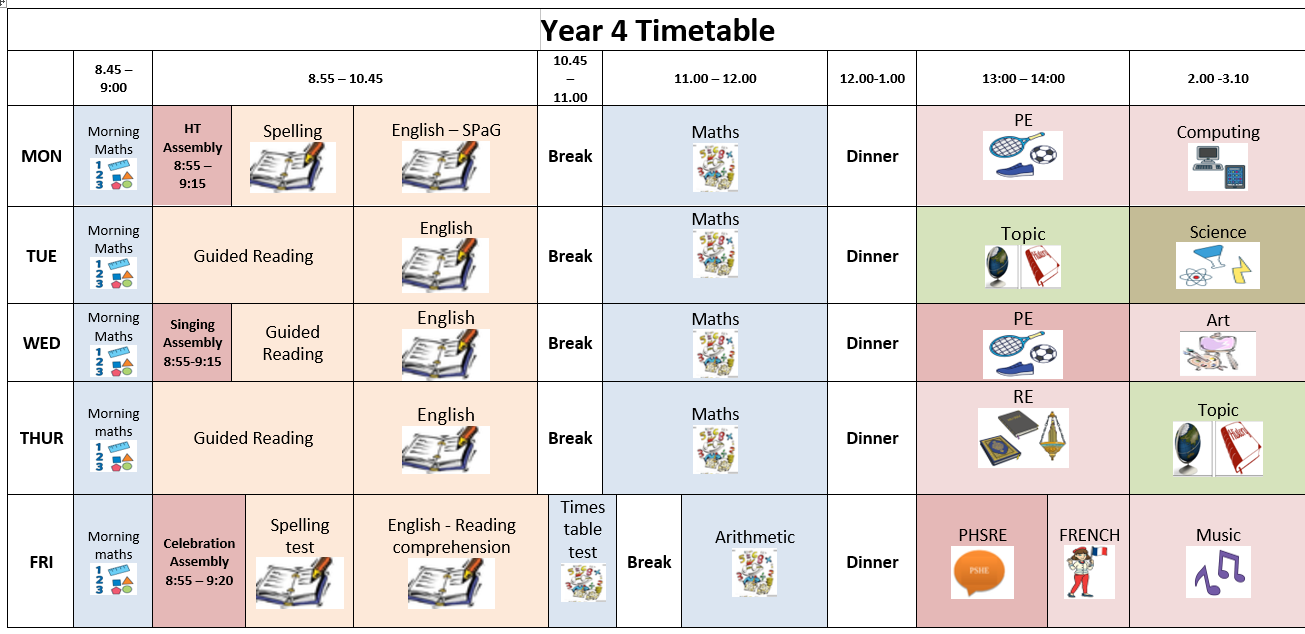 Below, you will find our weekly timetable, which outlines the subjects and activities your child will take part in throughout the week. This will give you a clearer picture of what a typical week in Year 4 looks like.