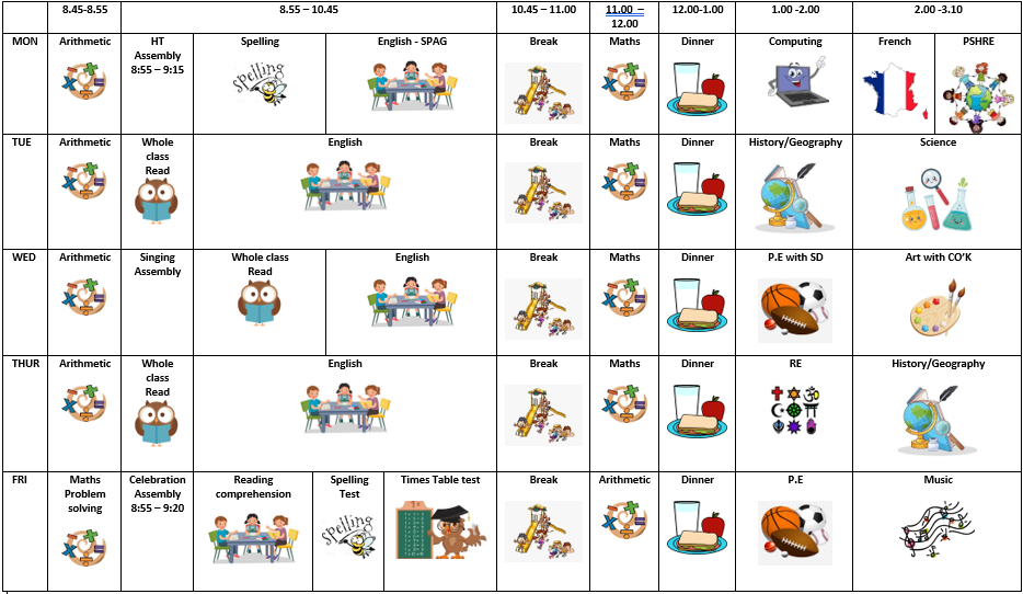 Below, you’ll find our weekly timetable, which outlines the subjects and activities your child will take part in throughout the week. This will give you a clearer picture of what a typical week in Year 4 looks like.
